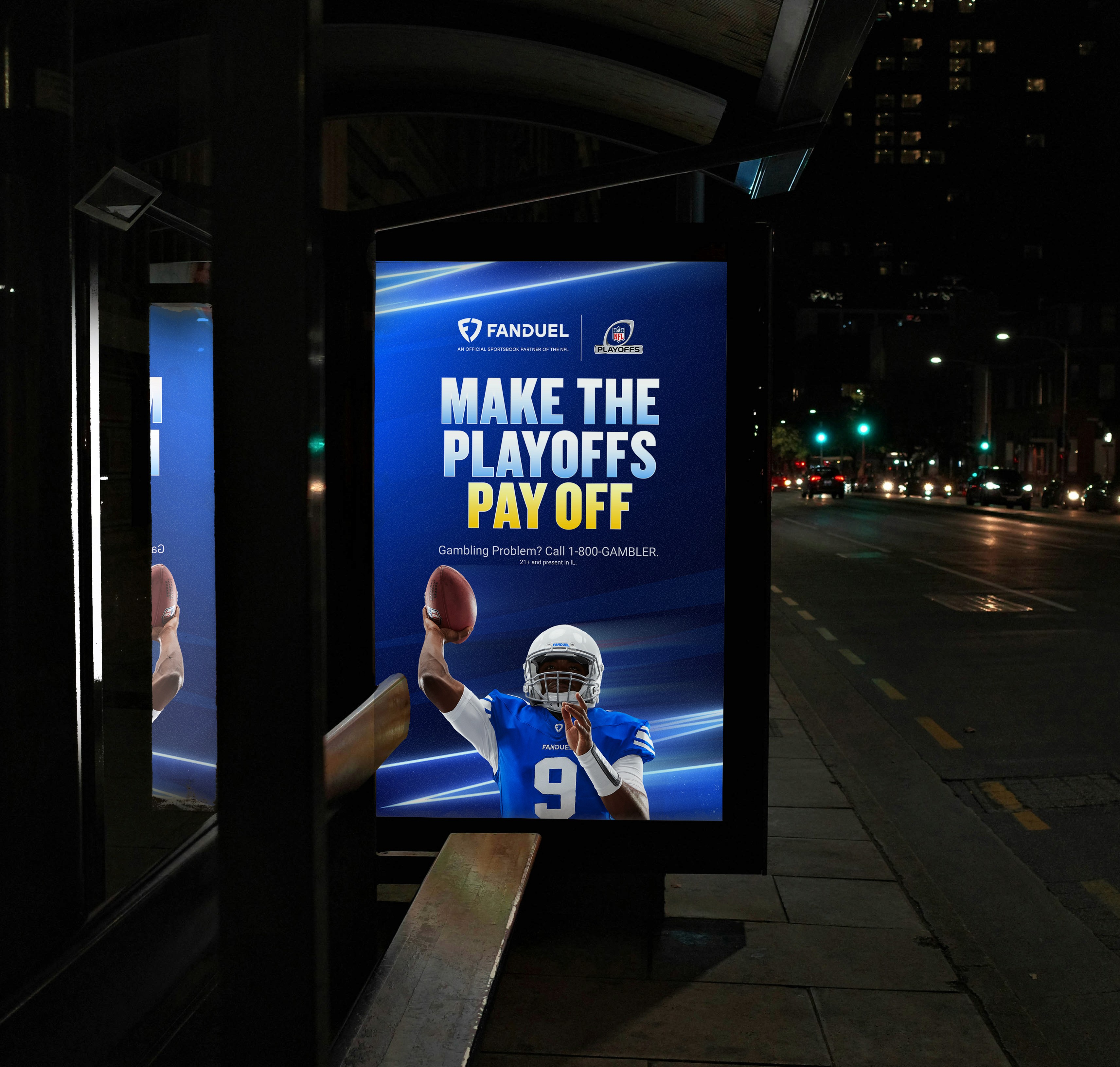 Creative produced for FanDuel’s 2024 NFL out-of-home campaign. Spanning billboards, bus shelters, and full bus wraps, the work was designed to take over key cities across the nation during the most pivotal moments of the football season.